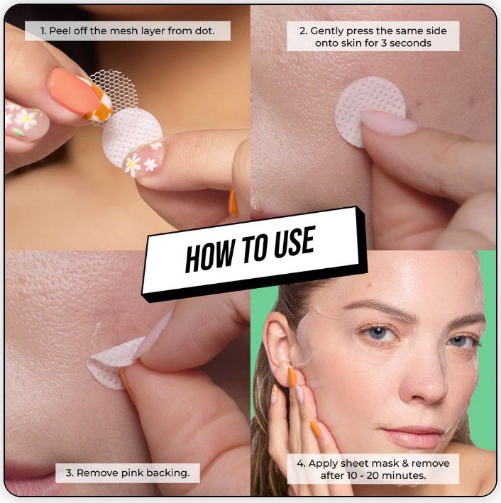 • 將點塗產品的同一面輕輕按壓於肌膚 3 秒,然後撕下粉紅色背襯。