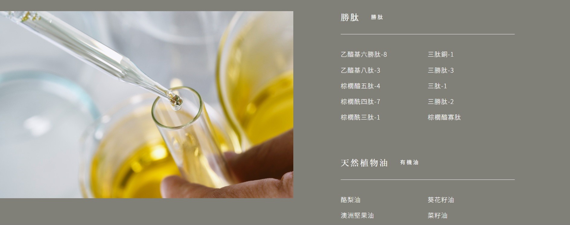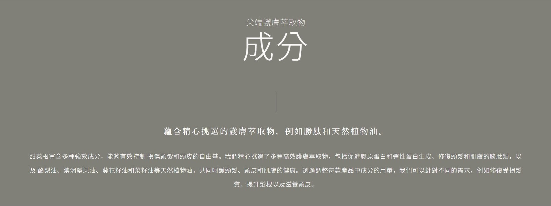 * 9種精選胜肽:深入髮絲結構, 從根本修復受損髮質 (Acetyl Hexapeptide-8, Acetyl Octapeptide-3, Palmitoyl Pentapeptide-4, Palmitoyl Tetrapeptide-7, Palmitoyl Tripeptide-1, Tripeptide-3, Tripeptide-1, Tripeptide-2, Copper Tripeptide-1 (藍銅胜肽生髮)