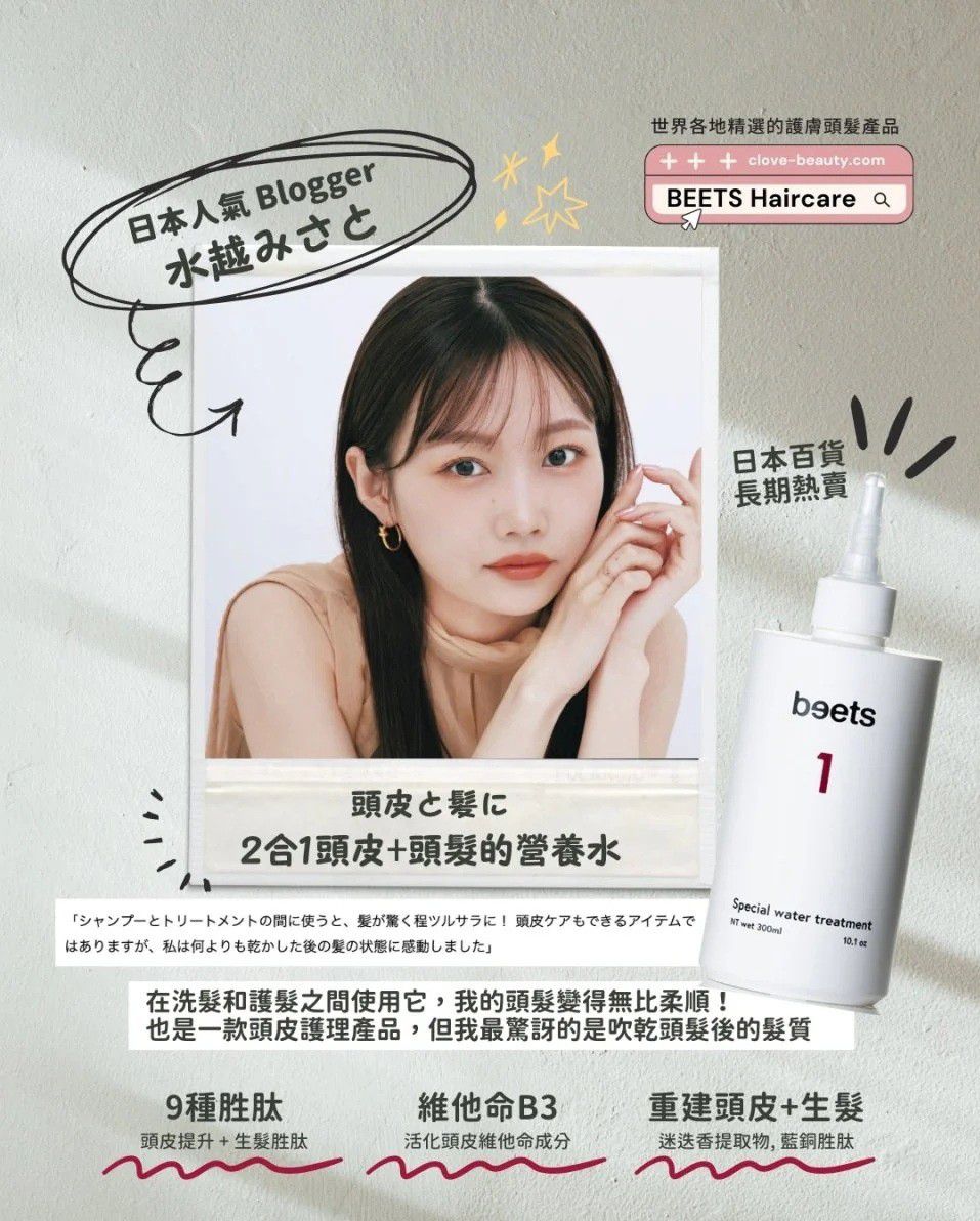 沒時間等髮膜慢慢吸收?來自日本的 Beets No.1 顛覆了傳統護髮概念。這款水狀髮膜 (Water Treatment) 遇水即產生微溫熱感,利用「蒸氣效應」瞬間打開毛鱗片,讓 21 種氨基酸營養在 11 秒內極速滲透髮芯。無需等待,一沖水即時感受到前所未有的順滑。