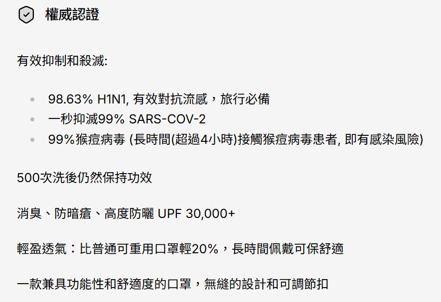 您正在評論: INNOTIER 銀織滅毒可重用口罩 InnoShield TXM99 - 黑色