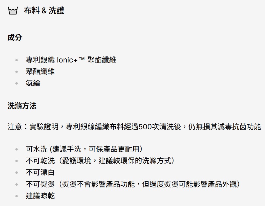 - 耐洗500次: 抗病毒功能持續超過7年(每5-7天洗滌一次)