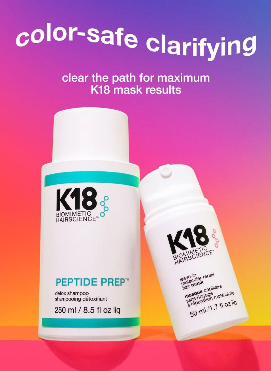 K18 PEPTIDE PREP™ 排毒護色洗髮水 ~ 水(Aqua)(Eau),C14-16 烯烴磺酸鈉,椰油酰胺丙基羥基磺基甜菜鹼,水楊酸,活性炭粉,sh-寡肽-78,泛醇,甘油,植酸鈉,瓜爾膠羥丙基三甲基氯化銨,氧化甘醇,辛酰羥丁酸,檸檬酸,氫氧化酸,氧化檸檬酸,水楊鈉,水甘酮。