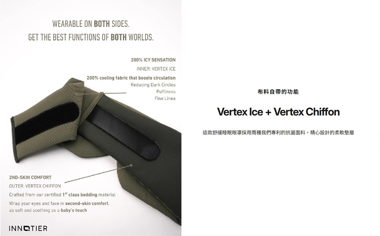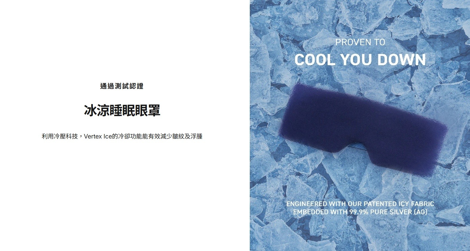 * 採用特製「冰涼」布料,提供200%冰涼觸感,能自然減淡眼部浮腫及腫脹
