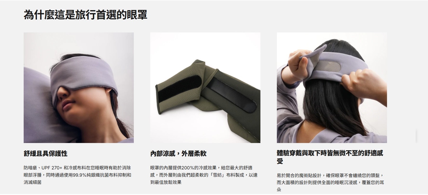 * 特製魔術貼開合便捷,不會纏結頭髮,覆蓋面積大,讓你輕鬆進入深沉睡眠